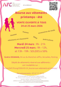 Cette bourse aux vêtements est ouverte à tous, mais les dépôts sont toutefois réservés aux adhérents des AFC des Yvelines.